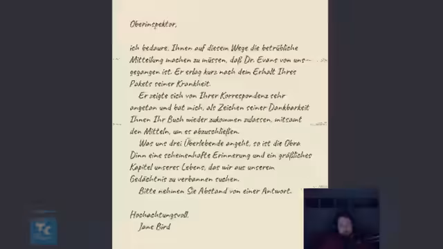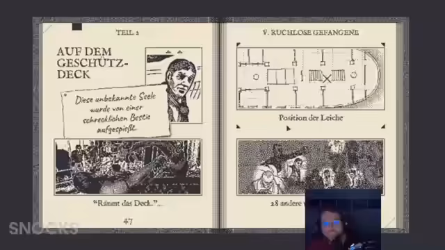 03:10:21Nachdem das Oberflächliche erkundet wurde, konzentriert sich der Stream auf die Lösung komplexer Storylines, wie 'Ruhlose Gefangene' und 'Occasion'. Hierbei werden Leichenpositionen mit den zugehörigen Ereignissen in Verbindung gebracht. Die Suche nach den letzten fehlenden Informationen, insbesondere über den Schiffsarzt und die ruchlosen Gefangenen, gestaltet sich als äußerst schwierig und erfordert ein stückweises Zusammensetzen der bruchstückhaften Erkenntnisse.