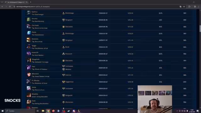 00:07:37Hauptthema des Streams ist eine besondere FlexQ-Challenge, bei der der Streamer versucht, mit Champion-Line-ups aus jedem Jahr von League of Legends zu gewinnen. Er präsentiert eine Liste der Champion-Veröffentlichungen pro Jahr und stellt fest, dass in den späteren Jahre deutlich weniger Champions veröffentlicht wurden, was die Challenge erschwert. Für 2025 plant er bereits ein Line-up mit Mel, Junara und Sahin, zeigt aber auch Bedenken, wie man mit Jahren umgehen soll, in denen weniger Champions zur Auswahl stehen.