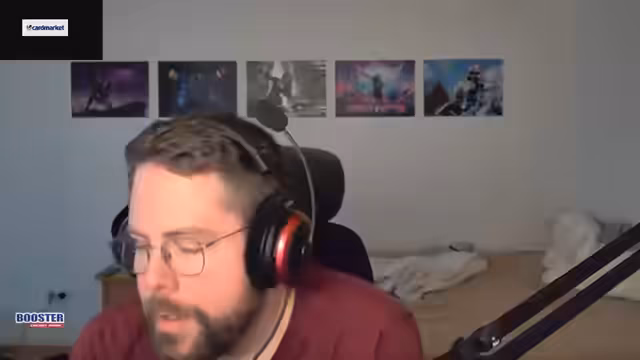 00:08:23Ankündigung des Cardmarket-Pack-Openings: Er wird ein Display Riftbound-Booster öffnen, um ein Deck zu bauen. Er erklärt kurz Cardmarket als Plattform für Kartenkauf (z. B. Magic, Pokémon, Yu-Gi-Oh!). Das Ziel ist ein Turnier gegen Kevin und Tristan. Er räumt ein, dass das Setup für das Pack Opening suboptimal ist.