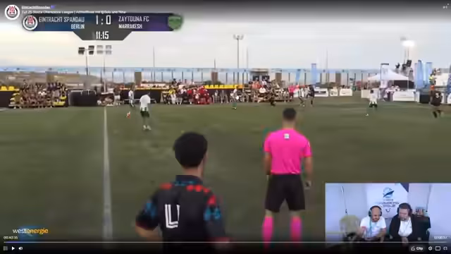 00:56:06Ein großer Kritikpunkt des Streamers waren die unsportlichen Verhaltensweisen im Turnier. Spieler fielen häufig künstlich und zeigten viel Simulation, um Zeit zu schinden oder Fouls zu provozieren. Die Schiedsrichter waren unfähig, dies konsequent zu ahnden. Als besonders unsportlich bewertete der Streamer das Verhalten von kasachischen Fans, die mit einer Pfeife gezielt störten, wenn Spandau im Ballbesitz war. Diese Verhaltensweisen ließen Fußball für ihn unattraktiv und schwer zu ertragen werden.