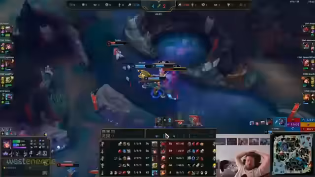 08:25:35Broeki zeigt deutliche Frustration über seine Spielleistungen, besonders seine Vayne in der Top-Lane. Er kritisiert die Teamkommunikation und Entscheidungen seiner Mitspieler scharf, bezeichnet sie als 'Versager' und äußert Unverständnis über die Champion-Auswahl in der gegebenen Team-Komposition. Gleichzeitig diskutiert er über Cheating-Vorwürfe gegen einen Corki-Spieler im gegnerischen Team und analysiert dessen Bewegungsabläufe im Detail.