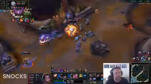 00:13:39Die Frustration über das Gameplay spitzt sich zu, als der Streamer seine Mitspieler als „low elo“ und „scheiß in Leaks“ bezeichnet. Er beschreibt die Aktionen der Gegner Botlane als übertrieben einfach und die eigenen Spieler als unfähig, grundleg Plays auszuführen. Diese Niederlage mündet in einen umfassenden Monolog über das als „schlecht“ empfundene Matchmaking, bei dem er als Master-Spieler auf Diamond-Teammates trifft und die generelle Spielqualität im Solo-Q als „Diamond“ kritisiert.