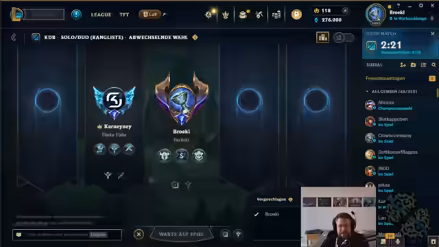 00:07:39Der Streamer bereitet sich auf eine DuoQ-Partie mit Karni vor. Sie tauschen sich über ihre Champions aus und analysieren die gegnerische Aufstellung. Dabei werden verschiedene Strategien und Champion-Kombinationen diskutiert. Der Streamer erwähnt auch seine aktuelle Winrate mit Lux und analysiert die Spielweise verschiedener Champions und Rollen in League of Legends.