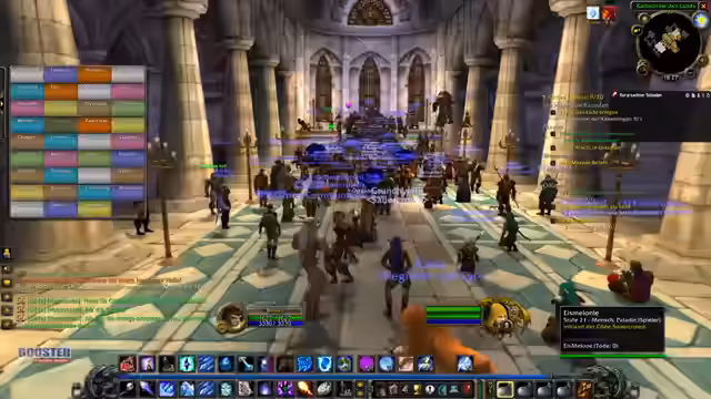 02:36:42Der Streamer startet einen Gruppenlauf durch die Instanz 'Kloster'. Er ist sehr selbstsicher und erwartet von allen Teilnehmern eine 'Höchstleistung'. Während des Runs gibt es sowohl in-game als auch im Chat eine Vielzahl von Diskussionen. Im Chat wird über persönliche Themen wie das Schlafen mit oder ohne Partner, der Konsum von Kaffee (Latte Macchiato) und andere private Angelegenheiten gesprochen. Der Streamer ist in seiner Rolle als Anführer der Gruppe sehr dominant und gibt klare Anweisungen, während er parallel eingehende Chat-Nachrichten und Handlungsaufforderungen beantwortet.
