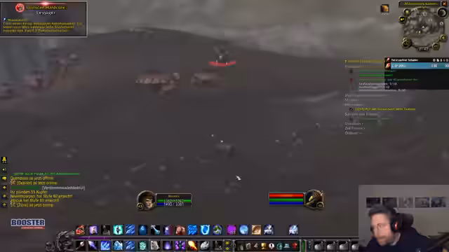 00:15:20Der Streamer wechselt ins Alteracgebirge, um spezifische Quests wie das Töten von Crush Ridge Kriegstreigern zu erledigen. Er bemängelt, dass er für diese Quests oft auf die Hilfe der Gilde angewiesen ist, diese aber nicht verfügbar scheint. Sein Charakter, ein Frostmagier, wird als sehr intensiv und anspruchsvoll beschrieben, was das Solo-Spiel erschwert.