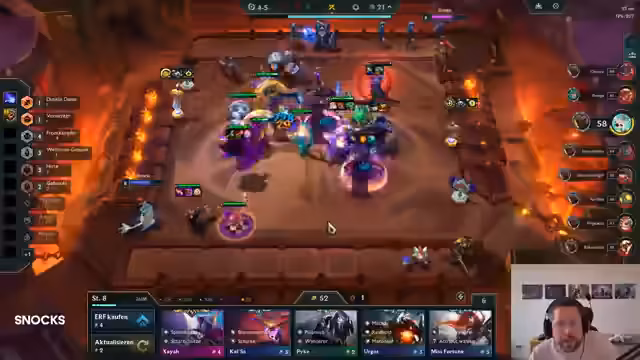 01:38:33Im späteren Verlauf des Spiels befindet sich der Streamer auf Level 9 und überlegt, ob er auf Level 10 aufsteigen soll. Er discutiert die Vor- und Nachteile seiner aktuellen Aufstellung und entscheidet sich, Nunu durch Blitzcrank zu ersetzen. Der Streamer beschreibt seine Strategie mit LeBlanc als Hauptcarry und diskutiert die Items, die sie am besten unterstützen. Er zeigt auch seine Bemühungen, durch Rollen im Shop bessere Champions zu finden und seine Teamkomposition zu optimieren.