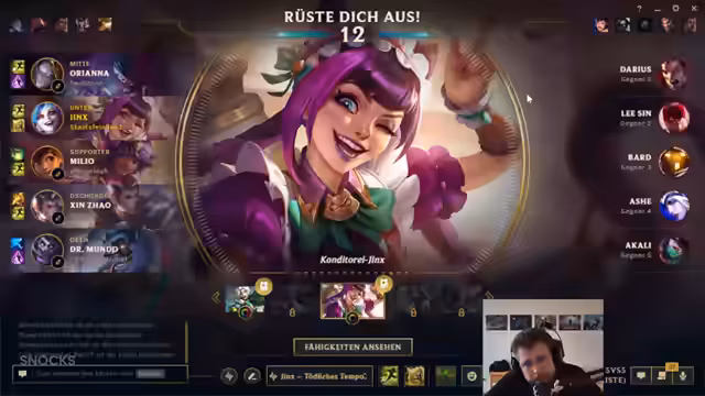 00:13:14Es werden die Gegner-Teams analysiert. Der Jungle-Gegner Obsess als Pro-Spieler gilt als größte Bedrohung. Gegen ihn wird ein Champion wie Sejuani, Maokai oder Trundle favorisiert, der gut im Teamfight funktioniert und auf Ultimates setzt. Der Jungle-Neuling erklärt, dass er zwar die Champions und das Spielprinzip versteht, aber kaum Team-Erfahrung hat. Es wird betont, dass die Kommunikation und klare Vorgaben von Bröki für den Erfolg entscheidend sind, da der Jungle zu Beginn keine Items kaufen darf.