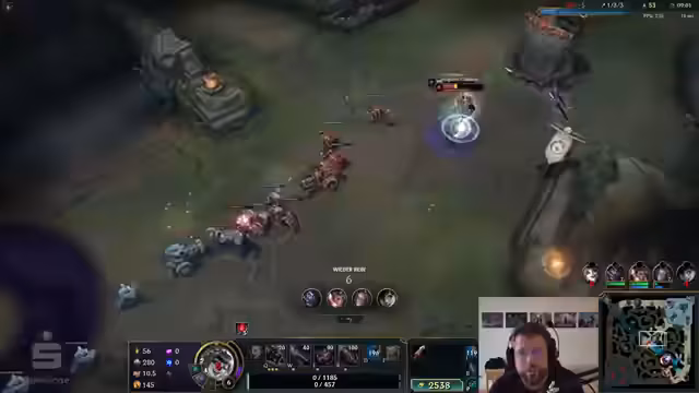 04:37:04Das Team plant einen koordinierten Angriff auf den Baron Nashor. Der Streamer, als Initiator, stirbt jedoch früh, weil er ohne Mana und ohne Ultimativen-Fähigkeit allein in eine Falle läuft. Trotzdem zeigt er großes Engagement und fängt sich schnell wieder, um einen weiteren Anlauf zu starten. Währenddessen kritisiert er den gegnerischen Jungler, der nur um einzelne Kills bittet, anstatt sich für das Team zu engagieren und zwingt das gegnerische Team in eine Verteidigungsposition.