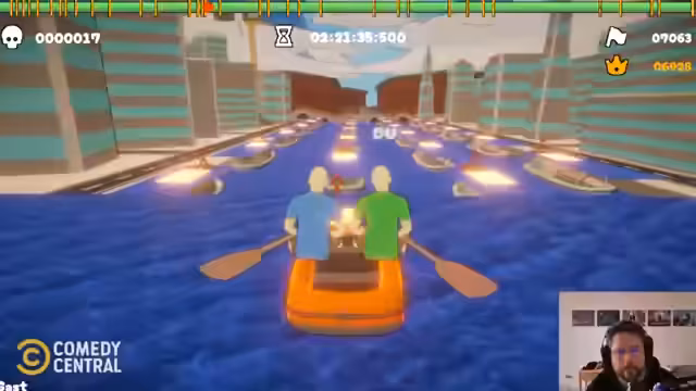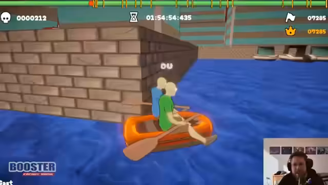 04:16:45Das gemeinsame Gameplay im Rennspiel wird nun intensiv fortgesetzt. Beide Spieler finden langsam einen Rhythmus, paddeln abwechselnd in einem vorgegebenen Takt und versuchen, Hindernisse zu umfahren. Währenddessen werden die Steuerungsmechaniken erklärt und kritisiert, da die Physik des Paddelns nicht intuitiv wirkt. Nachdem erste Hindernisse erfolgreich gemeistert werden, wird versucht, einenCheckpoint zu erreichen, wobei die Route und das Timing diskutiert werden.