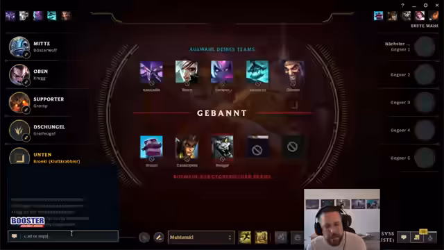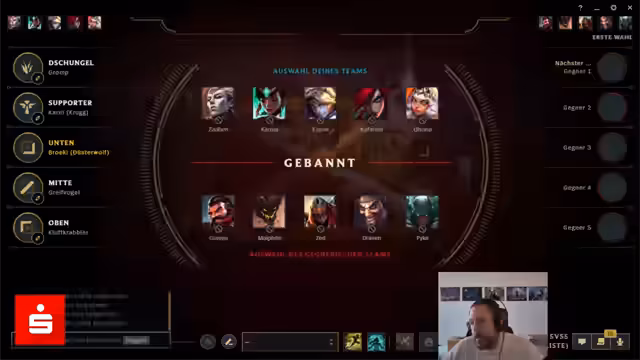 00:00:00Der Streamer beginnt das Spiel mit einem herzlichen Gruß an seine Zuschauer. Die Stimmung ist gelassen und humorvoll. Es geht um die Wahl der Champions für die Bot-Lane. Der Streamer erwägt verschiedene Supports für seine Miss Fortune, darunter Alistar und Braum, da letzterer gebannt ist. Die Gegenwahl der Gegner mit Rammus Support wird als ungewöhnlich eingestuft und lässt verschiedene Möglichkeiten für die eigene Team-Konstellation offen, wie etwa eine Relaunch oder Rakan. Entscheidend ist der Gedanke, den Team-Ressourcen ein sicheres Gefühl zu geben, um das Spiel zu dominieren.