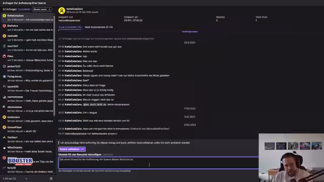 05:07:17Als alternative Aktion wird ein Unban-Stream geplant, bei dem gebannte User analysiert werden. Dabei wird ein Chat-Bann des Streamers thematisiert, der vermutlich durch eine sensible Frage von einem Nutzer ausgelöst wurde. Es entsteht eine Debatte über Chat-Moderation und die Reaktion des Streamers auf Provokationen. Die Unterscheidung zwischen humorvollen Beiträgen und Fehlverhalten ist zentral, wobei der Streamer für klare Regeln wirbt.
