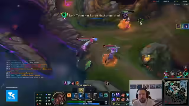 04:28:12Das Game wird trotz anfänglicher Probleme überraschend gewonnen. Die Team-Kommunikation und die Eroberung des Baron Nashor sind entscheidend für den Erfolg. Doch es gibt auch Enttäuschung, da der Streamer insgesamt unzufrieden mit seinen eigenen und den Leistungen im Team ist. Das Gefühl, dass das Spiel 'langweilig' und 'eklig' war, dominiert die Nachbetrachtung, was die Overall-Lust auf League of Legends trübt.