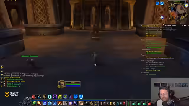 08:32:54Die Gruppe startet eine umfangreiche Questkette, die bis zur Audienz beim König von Stormwind führt und als Belohnung einen Ring verspricht. Während der Interaktion mit NPC wie Tyrion und Shayna werden humorvolle RP-Momente eingebaut, etwa als der Streamer mit einer 'Rave-Brille' flirtet. Es folgt eine Diskussion über den Streamer Axel und einen kontroversen Twitch-Clip, der als 'Bröki-Meme' bezeichnet wird, bevor die Gruppe in den Rotkammgebirge-Quests fortsetzt. Dabei tauschen sie sich über Gildenaktivitäten und geplante Dungeon-Runs aus.