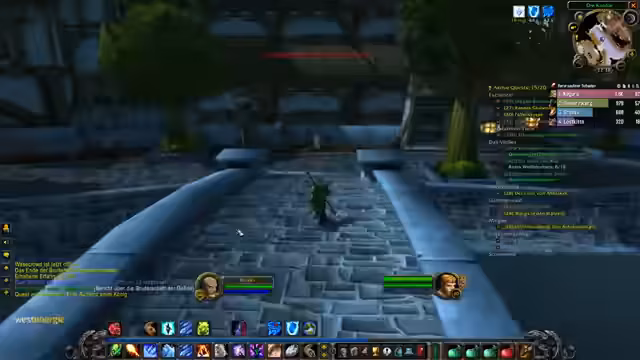 09:17:18Die Gruppe betritt Burg Schatten, um Elite-Quests wie 'Köpfe von Tarils Susans und Gars Ilzok' zu absolvieren. Sie koordiniert den Kampf gegen Elite-Mobs, indem sie einzelne Gegner isoliert und verhindert, dass sie fliehen oder zusätzliche Adds spawnen. Ein Rogue versucht die Gruppe zu griefen, indem er Mobs vorzeitig pullt, was zu Diskussionen über Spielerverhalten führt. Durch geschicktes Positionieren und Line-of-Sight-Tricks gegen Zauber wie 'Verbannen' bewältigt das Team die Bosskämpfe und sammelt die benötigten Questitems.