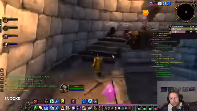 07:23:30Während des Dungeon-Runs koordiniert die Gruppe Pulls und Taktiken, wobei Buff-Management und Mana-Kontrolle wichtige Rollen spielen. Es looten Gegenstände wie ein Leder-Item, das nach Absprache an Nachtelfen weitergegeben wird. Besondere Herausforderungen sind schnelle Mob-Respawns und Enge der Gänge. Ein Highlight ist der Fund einer versiegelten Truhe, die jedoch nicht geöffnet werden kann. Der Endboss wird erfolgreich besiegt, wobei die Gruppe Loot wie 'Felinmantel' erhält.