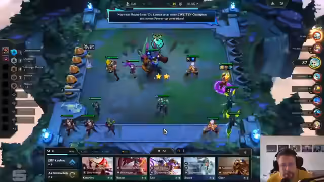 00:02:23Der Stream beginnt mit dem Einstieg in das aktuelle TFT-Spiel. Zunächst werden die Augmente diskutiert, die sich auf Level-2-Units und zukünftige Entwicklungen auswirken. Die gewählte Einheit, 'Schwergewicht', wird als nicht optimal eingestuft, und der Streamer überlegt, ob ein Re-Roll für eine stärkere Champion-Ebene sinnvoll wäre. Die ersten Runden verlaufen holprig, da die gezogenen Einheiten als 'Schrott' und 'Fehler Champs' bewertet werden, was zu einem langsamen Aufbau führt und die Gewinnstreak verhindert.