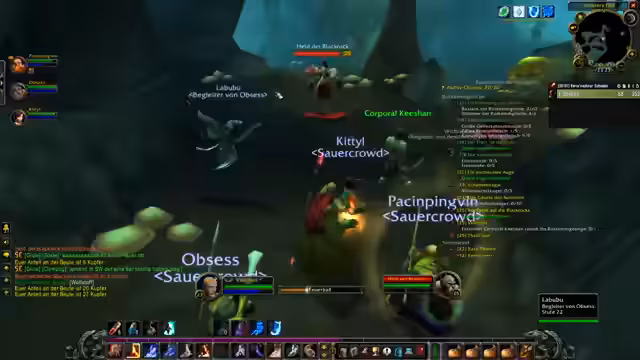 03:16:47Die Gruppe, bestehend aus dem Streamer, Kitty und einem weiteren Spieler namens Obsess, sucht nun aktiv nach einem Tank, um den Deadmines-Dungeon zu betreten. Sie kommunizieren über die empfohlene Level-Grenze und diskutieren die strategische Vorgehensweise. Es wird erwähnt, dass sie sich kurz bei einem Damm treffen und über verschiedene Loot-Optionen sprechen, die sie nutzen können. Nachdem sie die Gruppe vervollständigt haben, starten sie den Dungeon, wobei der Streamer den Tank spielt und die beiden anderen als Heiler fungieren. Sie sind sich ihrer Überlegenheit bewusst und planen den Run gemächlich zu gestalten.