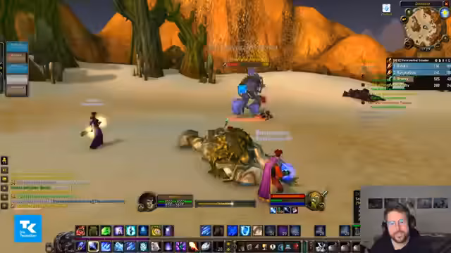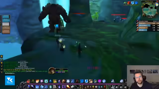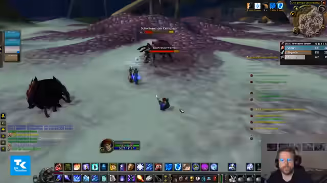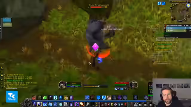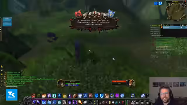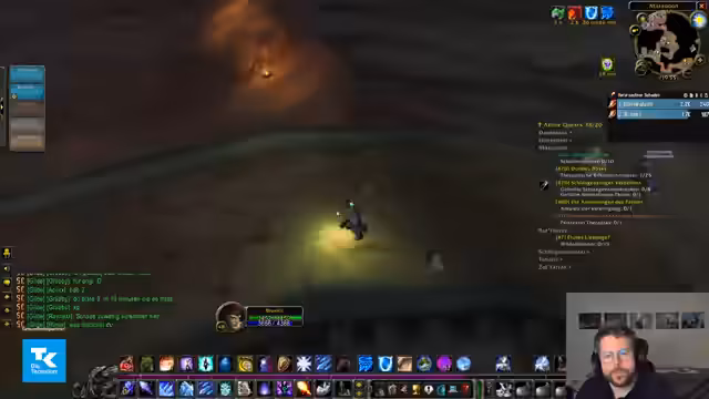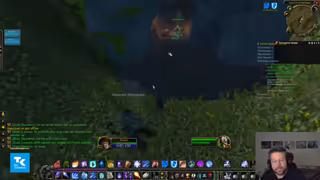 08:15:22Der Streamer wird von Freunden aufgefordert, auf Discord zu kommen, um besser kommunizieren zu können, da er sonst keine Nachrichten erhalten kann. Es folgt eine Diskussion über Level 42er Mobster und eine Quest, die er im Dunkeln geschafft hat, jedoch durch Booty Bay fliegt und sich in einem Gebiet mit höheren Gorillas verirrt. Die Spieler diskutieren über Layer-Transfer, um sicherzustellen, dass sie auf demselben Server-Layer sind, und planen, in Stranglethorn Vale weiter zu questen. Dabei wird klar, dass es riskant ist, durch Gebiete mit Level 50 Gorillas zu laufen, weshalb ausgeloggt wird. Es wird über den Ruhstein gesprochen, um zu einem sicheren Ort zurückzukehren, und es gibt Verwirrung, während sie versuchen, sich zu finden, bis der Ruhstein aktiviert wird und ein Spieler sich verabschiedet.