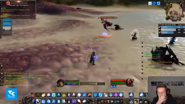06:00:06Es wird ein intensives Kampferlebnis beim Farmen beschrieben, bei dem der Sprecher mit wenigen Lebenspunkten und leerem Mana-Reservoir gegen mehrere Gegner kämpfen musste. Dieser knappe Überlebenskampf wird als sehr gefährlich und spannend dargestellt. Anschließend folgt die Planung für die Insekten-Drop-Quest, die mit der Follow-up-Quest und einer Escort-Quest verknüpft wird. Die Diskussion zeigt die Notwendigkeit von Gruppenkoordination, da einige Quests wie die Schildkröten-Eskorte spezifische Mechaniken erfordern und nicht alleine durchführbar sind.