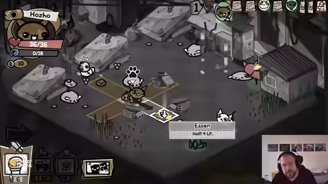 06:06:32Nach dem League of Legends-Spiel wechselt der Fokus auf ein neues Spiel, in dem Katzen im Mittelpunkt stehen. Der Streamer stellt fest, dass es sich um ein roguelikeähnliches Spiel handelt, das auch Elemente von Binding of Isaac aufweist. Er beschreibt seine Crew von Katzen, die er in sein Abenteuer mitnimmt, und äußert sich über das ungewöhnliche Design seiner Heilerin, die ihm zwar optisch gefällt, aber spielerisch noch nicht überzeugt.