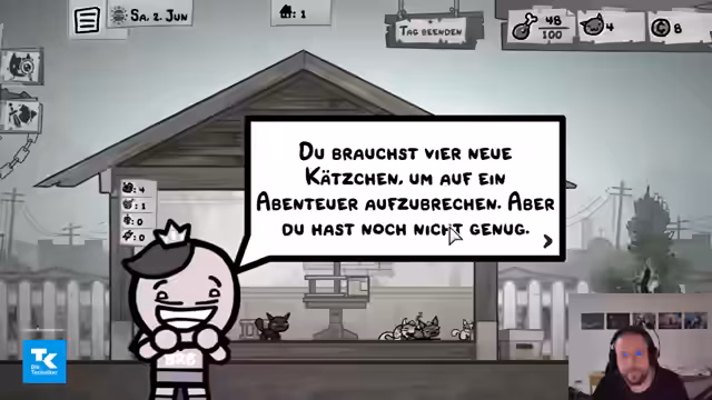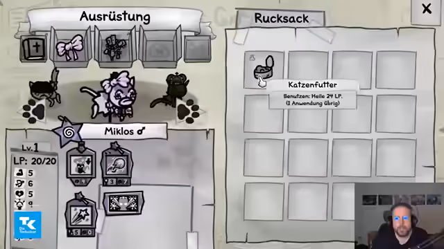 02:07:52Nachdem die erste Katze Athene in ein Kampfgescheinen involviert war, steigt sie auf Level 2 auf und erhält neue Fähigkeiten. Der Streamer erkundet die Stärken und Schwächen der verschiedenen Katzen und ihrer Ausrüstung, wie zum Beispiel einer Katzenminze, die Mana spendet. Es finden erste Interaktionen mit zufälligen Ereignis statt. Der Fokus liegt auf dem Erlernen der Spielmechaniken und dem Testen von synergistischen Fähigkeitskombos, während er den Schritt für Schritt durch das Spiel führt und seine fortlaufenden Entdeckungen teilt.