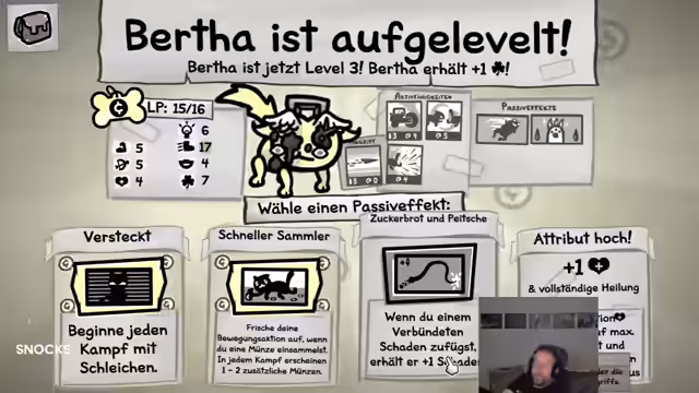 06:27:15Wenn Katzen im Dungeonlevel aufsteigen, erhalten sie neue oder verbesserte Fähigkeiten. Dies eröffnet dem Streamer neue taktische Optionen und macht seine Crew noch stärker. Er ist besonders beeindruckt, wenn seine Katzen Fähigkeiten erlernen, die ihn zuvor schon interessiert hatten, und testet diese direkt im Kampf. Das Leveln der Kätzchen wird als zentrales Element des Spiels angesehen, das langfristige Erfolge ermöglicht.