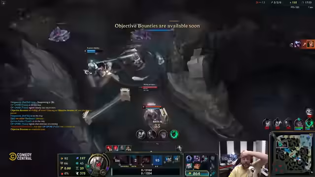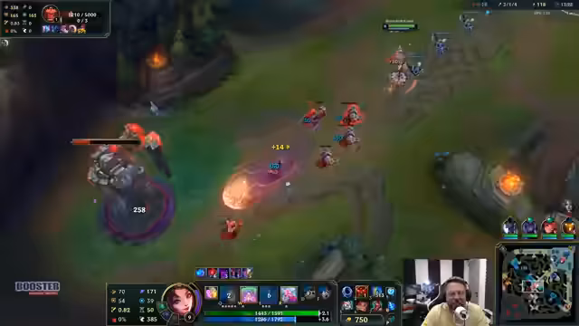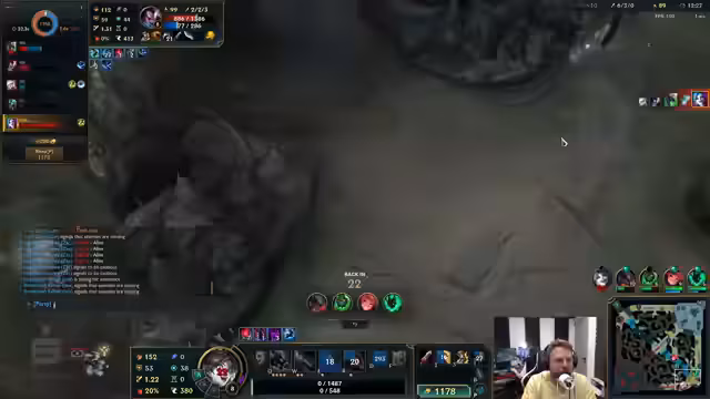 09:00:37Der Streamer und seine Mitspieler diskutieren die Idee eines privaten High-Elo-Servers, um den Mangel an Spielern auf dem aktuellen Server zu beheben. Es folgt die Beschreibung eines anstrengenden und frustrierenden Spiels, bei dem er als Swain spielt. Er ärgert sich über schwache Gegner, einen durch Flash abgebrochenen Fight und einen Fehler in seinem Build. Der Chat interagiert mit Kommentaren und Spott, was er widerspiegelt.