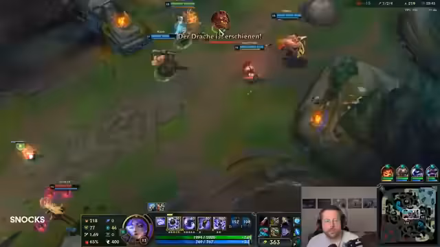 00:12:29Während eines Live-Games werden taktische Entscheidungen analysiert. Es geht um die Wahl von Champions wie Olaf, die Item-Builds und die strategische Positionierung in Teamkämpfen. Der Streamer gibt Ratschläge zur Item-Wahl und zur Spielplanung, besonders im Jungle. Es werden auch mögliche Rote und Ziele wie Drake diskutiert.