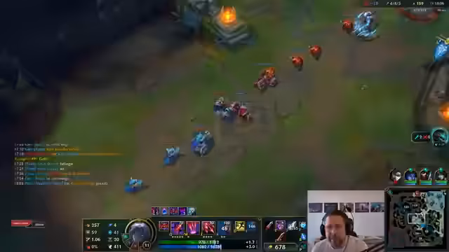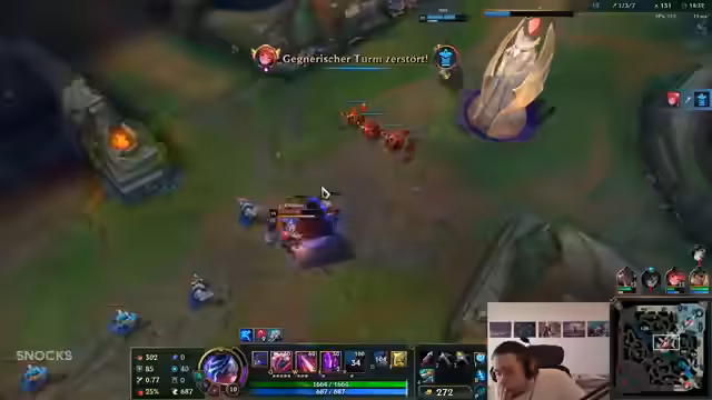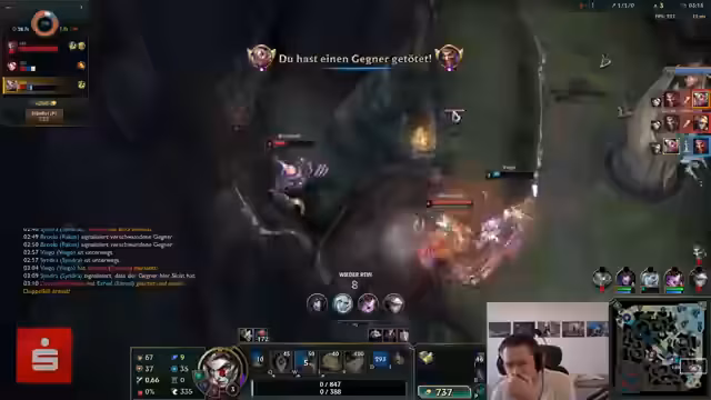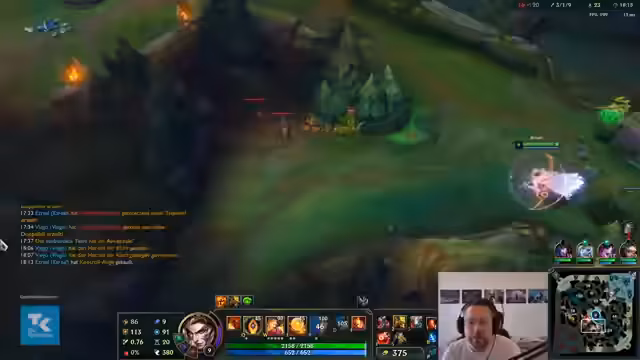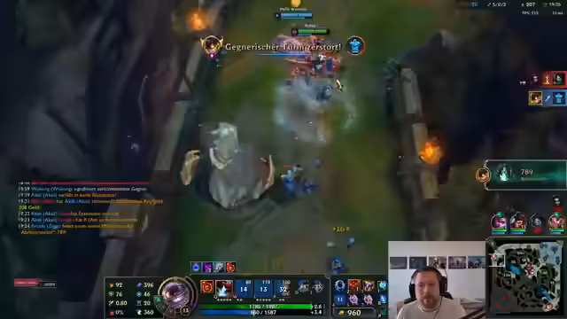 00:18:36Ein erstes Spiel wird mit gemischten Emotionen geschildert. Der Streamer stellt fest, dass trotz des hohen Spielniveaus einiges schiefgeht, wie zum Beispiel ein Solo-Tod. Es wird einiges über Champion-Counter und die Notwendigkeit von Teamplay gesprochen. Während des Spiels zeigt sich Frustration über Teamkollegen, die sich suboptimal verhalten, was zu einer schwierigen Situation führt, in der er das Spiel trägt.