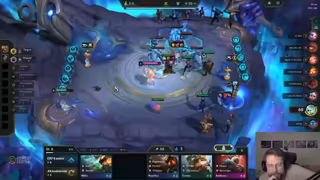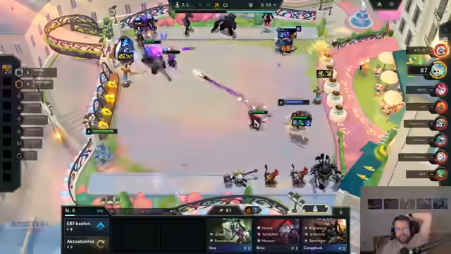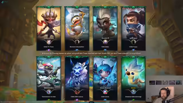 00:10:31Broeki spielt erneut eine Demacia-Composition und kommentiert humorvoll die lore-technische Inkonsistenz von Sven in einer Demacia-Comp. Er diskutiert die Vor- und Nachteile von Emblemen wie Weitschuss und optimiert sein Board durch gezieltes Rollen. Dabei gelingt ihm ein glücklicher Vayne-3-Hit, der sein Spiel rettet. Parallel nimmt er sich Zeit, um mit dem Chat über Musikwünsche zu interagieren und erwähnt nebenbei ein bevorstehendes WoW-Event am 27., zu dem er sich anmeldet.