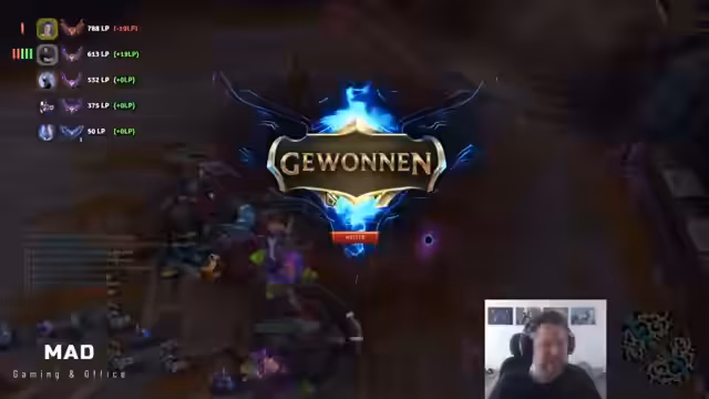 03:46:14Der Streamer entspannt sich mit einem 'Kuldern', um die nächsten Streams 'vernünftig spielen' zu können. Der Sieg mit 'dreieinhalb Support Jams' wird als ein bisschen gruselig, aber erfreulich empfunden und LP werden mitgenommen. Er verabschiedet sich, kündigt einen Stream um 15 Uhr an und beendet die Übertragung.