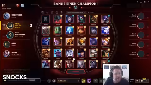 00:00:00Der Stream beginnt mit Begrüßungen des Publikums. Der Streamer wählt für sich Seraphine, während sein Team einen Leblanc-Support und einen Volibear-Jungler selectt. Gegnerischerseits sind ein Varus und ein Malphite im Spiel. Der Streamer stellt die Wahl zwischen einem AP-Build und einem W-Max-Build für Seraphine in Frage und vermerkt, dass es sich um eine schwierige Lane gegen Nautilus handelt. Die anfängliche Stimmung ist geprägt von der Aufstellung und den Vorabinformationen über die gegnerische Teamkompilation.