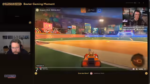 00:15:34Es wird die Idee diskutiert, den Discord-Stream für die Stream Awards zu nutzen, um die Clips gemeinsam anzusehen, wobei die Frage nach der Soundqualität und den technischen Herausforderungen des Mischpults aufkommt. Nach einem kurzen Test wird festgestellt, dass die Qualität gut ist und diese Methode verwendet werden kann. Der Streamer erklärt, dass er seine Votes für die Stream Awards privat abgeben wird, um während des Streams nicht ständig zwischen den Clips wechseln zu müssen, aber er wird seine Abstimmungen im Stream bekannt geben und darüber diskutieren. Die erste Kategorie ist der 'Beste Rage-Moment'. Er findet es lustig, wenn Leute für ihren Ausraster einen Preis entgegennehmen. Er erinnert sich an Freddys Gewinn im letzten Jahr mit einem seiner Rage-Momente. Die Zuschauer können separat abstimmen, während die Streamer-Jury ihre eigene Abstimmung hat. Er schaut sich die ersten Clips an, darunter Elotrix, der als Coach von Schradin nicht viel mitgeben konnte, was die Situation noch lustiger macht. Ein weiterer Clip zeigt eine Watch Party zu einem Fußballspiel, bei dem ein Trompeter die Ernsthaftigkeit der Situation nimmt. Ein dritter Clip zeigt Eldos, einen FIFA-Spieler, der bei einem eSport-Clan unter Vertrag steht und dessen Machtverhältnis zum anderen Spieler trotz allem zu einem Rauswurf führt. Der Streamer bemerkt, wie unterschiedlich die Among Us-Story heute im Vergleich zu früher ist, da sich die Spieler gegenseitig töten.