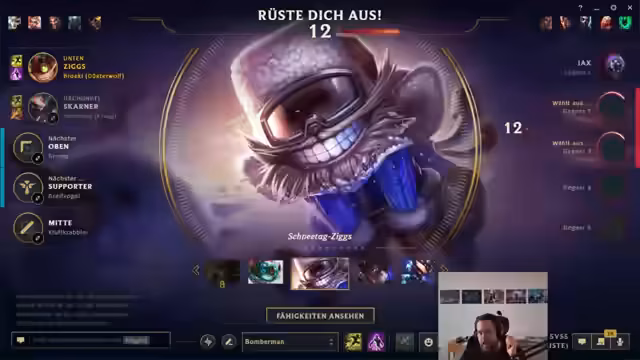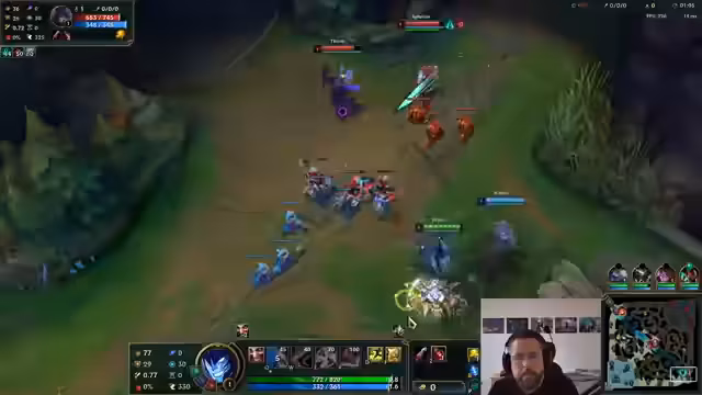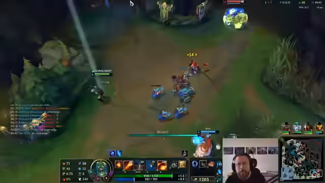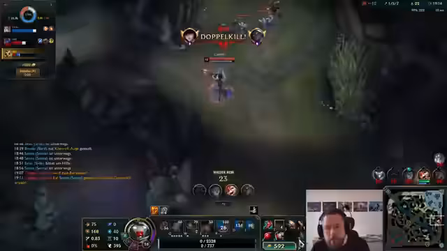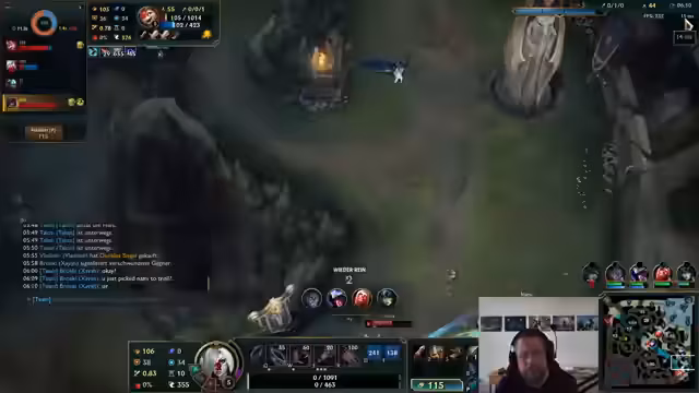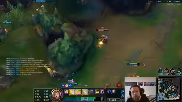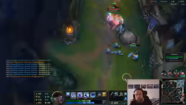 08:46:44Im League of Legends-Gameplay kritisiert der Streamer die Leistung seines Champions Ornn, der als relativ blass und ohne wirklichen Impact im Spiel beschrieben wird. Er sieht darin eine schwierige Pick-Phase und äußert Frustration über das fehlende Teamplay. Die Analyse des Spiels bezieht sich auch auf das Verhalten der Gegner und die eigenen strategischen Fehler, insbesondere bei der Nutzung von Ultimate-Fähigkeiten und der Positionierung auf der Map.