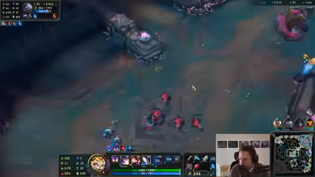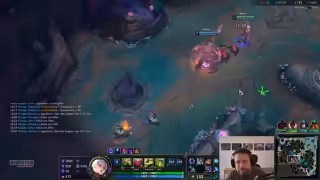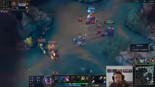 04:46:35Die Unterhaltung konzentriert sich auf aktuelle Spiele von League of Legends, wobei besondere Aufmerksamkeit einem ungewöhnlichen Nautilus-Jungle geschenkt wird, der vor einem Buff spielt. Der Streamer analysiert das Spielgeschehen kritisch, insbesondere fehlerhafte Entscheidungen des gegnerischen Teams. Er äußert sich über Champion-Picks wie Fizz-Support und die taktischen Implikationen von Ghost auf Nautilus. Die Spannung steigt, als das eigene Team in einem Teamfight unterliegt, was den Streamer frustriert.