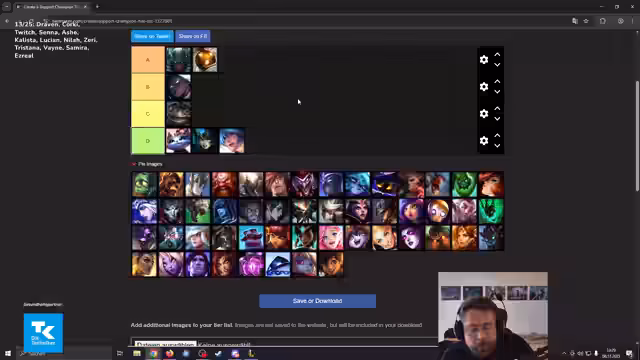 00:30:56Zwischen den Spielen führt der Streamer eine Diskussion über den Skill-Floor und Skill-Ceiling von verschiedenen Support-Champions. Er erstellt eine informelle Tierliste, um zu klassifizieren, wie viel Einarbeitung nötig ist, um einen Champion effektiv zu spielen (Skill Floor) und wie viel Potential bei hohem Können besteht (Skill Ceiling). Champs wie Nami und Sona gelten als einfach, während Champions wie Thresh und Rakan als anspruchsvoller eingestuft werden.