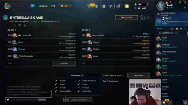 00:32:40Die Spieler beginnen mit der Klärung der Rollenverteilung für das anstehende FlexQ-Spiel. Es wird diskutiert, wer auf welche Lane geht, wobei Kutscher Mitte vorschlägt. Der Streamer plant, Katarina zu bannen und Evelynn zu bannen. Er überlegt, Letzke auf AD Carry zu schicken und selbst Support zu spielen, oder direkt den Jungle zu übernehmen. Die Spieler sind müde, da der Streamer nur vier Stunden Schlaf hatte, aber er ist bereit, alles zu geben. Es wird über Champion-Picks und Bans gesprochen, wobei die Gegner Varus Top spielen, was als Problem angesehen wird. Der Streamer entscheidet sich für Illaoi Top, obwohl er kein erfahrener Illaoi-Spieler ist, und die Teamzusammenstellung wird als 'Full AP' beschrieben. Es wird auch ein kurzes Quiz über europäische Währungen eingestreut, bei dem der Streamer nicht glänzen kann. Die Spieler überlegen, ob sie invaden sollen, und Patzzi wird als Shotcaller bestimmt. Der Streamer äußert sich humorvoll über die Gegner, insbesondere über Ginny, die Varus Top spielt, was als 'Gentleman's Agreement' gebrochen wird.