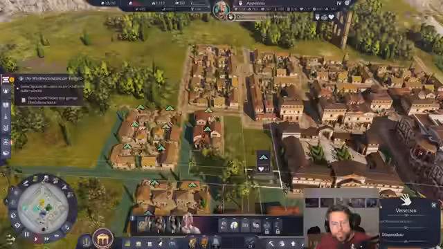 03:04:41Es treten Engpässe bei der Materialversorgung auf, insbesondere bei Ziegeln, was den Bau wichtiger Gebäude wie der Villa des Prätors verzögert. Die Produktionsketten für Kohle und Lehm müssen optimiert werden, da die Verarbeitungszeiten variieren und eine ausreichende Menge an Rohstoffen für die Ziegeleien sichergestellt werden muss. Die Stadtplanung wird durch die Notwendigkeit beeinflusst, Spezialistengebäude wie die Villa des Prätors nicht in der Nähe von Repurgierungsgebäuden zu errichten, was zu Überlegungen bezüglich des Baulimits und überlappender Radien führt. Die Einführung neuer Nahrungsquellen wie Brot und Garum erfordert den Bau von Weizenhöfen, Kornmühlen und Bäckereien. Die Platzierung dieser Gebäude muss unter Berücksichtigung von Brandschutzrisiken und der Verfügbarkeit von Wasser erfolgen. Es wird überlegt, ob eine Feuerwehr später zur Verfügung stehen wird, um die Brandsicherheit zu gewährleisten. Der Mangel an Pläbieren erfordert den Bau weiterer Wohnhäuser, um die Arbeitskräftebasis zu erweitern, wobei die ästhetische Gestaltung der Stadt eine wichtige Rolle spielt.