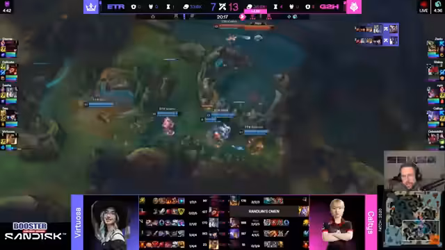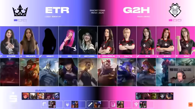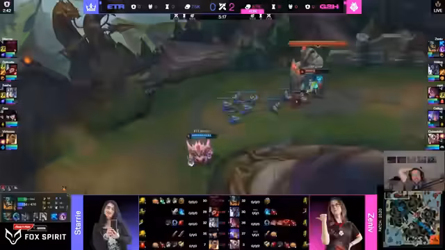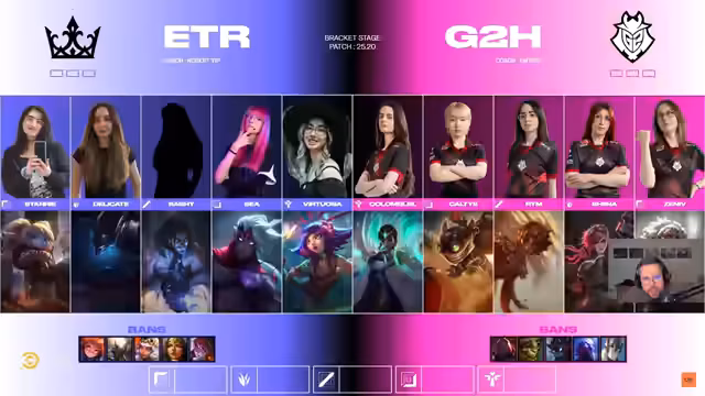 05:24:55Während des Spiels fällt auf, dass die Spielerin Virtuosa von Eterna snocks mit einem ungewöhnlich niedrigen Ping von 20 aus Amerika spielt. Der Kommentator spekuliert, was passieren würde, wenn diese Spielerinnen mit einem normalen Ping von unter 30 spielen würden. Das Spiel selbst verläuft mit hohem Risiko. Nachdem G2 den Drachen sichert, startet Zenith von G2H eine aggressive Initiative, scheitert jedoch. Eterna nutzt diese Gelegenheit, um eine entscheidende Teamkämpfe für sich zu entscheiden und das Finale zu erreichen.