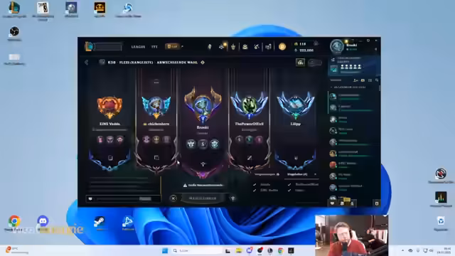 01:37:11Für die erste Runde der FlexQ-Challenge wird eine unkonventionelle 'Blind Comp' zusammengestellt, bei der die Gegner die Champions nicht im Voraus sehen. Es gibt eine längere Diskussion über die Champion-Auswahl, bei der Kevin den Draft übernimmt. Die Teilnehmer debattieren über die Rollenverteilung, entscheiden sich für Picks wie Nocturne, Timo und Graves und diskutieren die strategischen Vor- und Nachteile dieser Aufstellung. Der Prozess wird von Unstimmigkeiten und spontanen Entscheidungen begleitet.