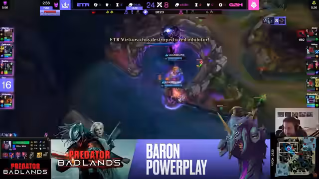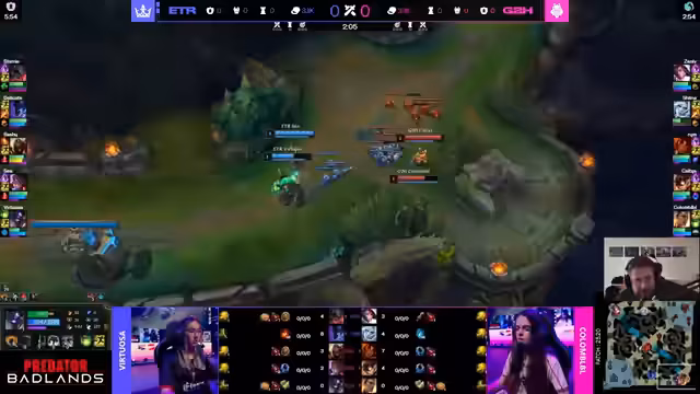 02:05:31Das Spiel verläuft ähnlich wie die vorherigen, mit G2, das in der Lane-Phase Fehler macht. Eternas Überlegenheit in den Teamfights wird erneut deutlich, insbesondere durch die effektive Nutzung ihrer Ults und den hohen Schaden der Carries. Kommentare deutet an, dass der K.o.-Status des Teams für Eterna eine zusätzliche Motivation darstellt. G2s AD-Carry Kalte kann sich durch gute Einzelleistung und CS-Vorteil etwas zurückkämpfen, was ihnen kurzzeitig eine Win-Con gibt. Letztendlich scheitert G2 jedoch an der fehlenden Frontline und der koordinierten Aggression von Eterna, die das Spiel klar für sich entscheidet.