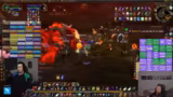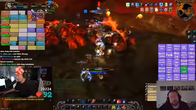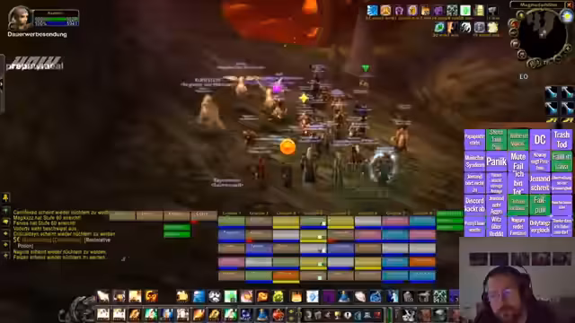 05:09:54Der Höhepunkt des Streams ist der Bosskampf gegen Magmadar, der durch seine Bombe-Kombo extrem gefährlich ist. Der Streamer ruft ständig nach der Bombe und klärt die Bewegungsabläufe. Als jemand, den die Bombe trifft, panisch im Raid stehen bleibt, eskaliert die Situation und führt zum Tod mehrerer Spieler. Dies wird als krasse, aber unterhaltsame Situation verarbeitet und mit einem Scherz über Reddit quittiert.