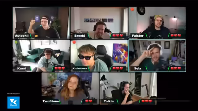 06:10:43Die Quizrunde endet mit einer Controverse, da Kani zugibt, während des Chats geschummelt zu haben, um eine Frage richtig zu beantworten. Dies führt zu intensiven Diskussionen über Fairness und Belohnung von Ehrlichkeit. Die Teilnehmer Kani, Sola und Tolkien müssen darüber abstimmen, wer wegen dieses Vorfalls ein Leben verliert. Dabei gibt es emotionale Debatten über Gerechtigkeit in der Gruppe und den Stellenwert von Ehrlichkeit. Letztendlich entscheidet sich die Gruppe, trotzdem Kani aus dem Spiel zu nehmen.