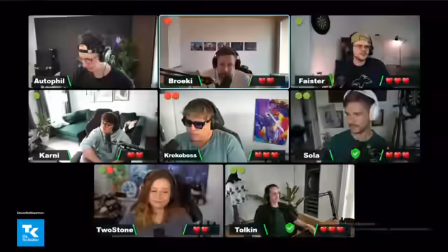 05:22:56Der Stream veranstaltet eine ausführliche Quizrunde mit League of Legends Trivia-Fragen. Teilnehmer wie Wilhelm II., Sola, Kani und Tolkien werden stellen zur Beantwortung vorgelegt. Themen reichen von Champion-Kenntnissen über Gameplay-Mechaniken bis hin zu Lore-Fragen. Dabei kommt es immer wieder zu humorvollen Momenten und Diskussionen über die korrekten Antworten. Manche Fragen wie die zu den World Songs oder zu Morris Graves Vornamen werden besonders intensiv diskutiert.