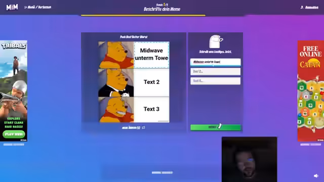 01:16:57Nachdem das Spiel auf unbestimmte Zeit verschoben wurde, wendet sich die Gruppe dem Spiel 'Make It Meme' zu. Der Streamer und seine Teammitnehmer versuchen, kreative Memes zu erstellen, was zu humorvollen und teilweise verwirrenden Ergebnissen führt. Die interaktive Natur des Spiels führt zu Diskussionen über Humor und die Interpretation von Memes, was die Stimmung im Stream auflockert.