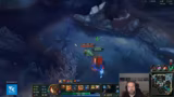 03:34:21In einem anderen Spiel nutzt der Streamer Diana als Engage-Tool für sein Team. Er ist verwirrt, warum die gegnerische Elise seine Camps nicht nimmt, und beschwert sich über die fehlenden Traps des Gegners. Das Team beschließt, einen Dragon zu nehmen und der Streamer fordert seine Solo-Lanes auf, aufzuhören zu 'heulen' und sich stattdessen auf den Kampf zu konzentrieren. Er lobt einen smarten Move von Thresh, der es dem Team ermöglicht, einen Fight zu gewinnen.