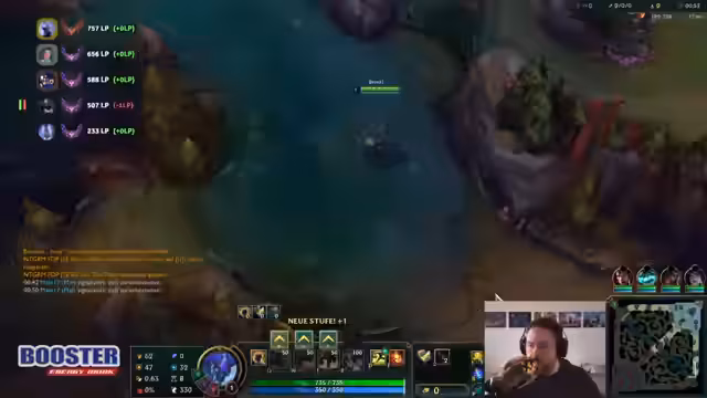 01:01:33Der Streamer beginnt ein neues League of Legends-Spiel, das schnell in Frustration umschlägt. Er ist unzufrieden mit dem unkoordinierten Spielstil seines Teams, insbesondere mit seinem Jungle-Spieler, der laut ihm AFK geht oder völlig fehlpositioniert ist. Er beschreibt das Gefühl, Spiele nicht mehr beeinflussen zu können und macht sich selbst und sein Team für verlorene Matches verantwortlich. Die mangelnde Teamkommunikation und strategische Planlosigkeit führen dazu, dass die Lust am Spielen rapide sinkt.