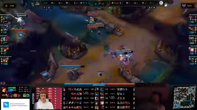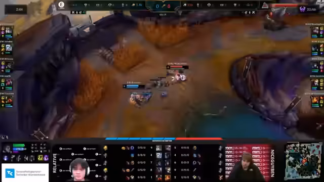 09:49:12Eine detaillierte Replay-Analys eines engen Fights, in dem "Argoin's Team" einen Kill-Trade erzielt, obwohl sie im Nachteil waren. Der Streamer lobt "Enix" für einen "geilen Snowball" und "Algorithm" für den Carry. Gleichzeitig kritisiert er "Kaufland" für eine angeblich unbeatable Frontline und fragt sich, ob der Ausgang des Spiels zwischen "Kaufland" und "Argoin" für sein Team vorteilhaft wäre. Es folgt eine Diskussion über den Turnierplan und die Berechnung der Punkte in der Gruppe B.