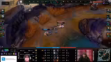 07:34:00Ein Early Game Gang von Xyrog, der von Rocklow gecountert wird, wird analysiert. Er muss flashen und ist somit für einen Gang ausgeschaltet. Parallel wird unten ohne ADC gegankt, was zu First Blood Gold führt. Die Folgen werden als 'kind of over' beschrieben, auch wenn der Streamer die Camp-Position noch anpasst. Die Spielleistung des Junglers wird in Frage gestellt und die allgemeine Unglücklichkeit in der Anfangsphase des Games wird hervorgehoben.