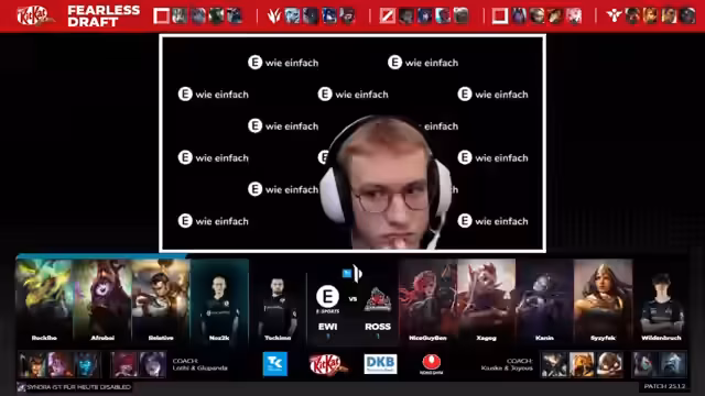 09:45:04Der Streamer zieht eine positive Bilanz für das Team "Kaufland", das die bisherigen Spiele "sehr hoch geratet" gespielt hat und mit 2-0 führt. Er äußert Bedenken bezüglich des Drafts von "Dung Dynasty", der aus vier Engage-Champions und Zyra bestehe und strategisch fragwürdig sei. Der aktuelle Stand in der Gruppe B ist offen; der Streamer erläutert, dass ein Sieg gegen Frankfurt und eine Niederlage gegen Kaufland zu einem Entscheidungsspiel um die Top 4 führen könnte, wobei das genaue Weiterkommen noch ungewiss ist.